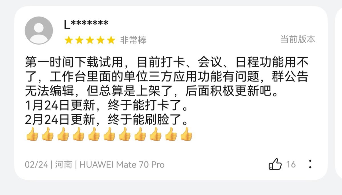 經常要用企業微信的小伙伴們發現了嗎,鴻蒙原生版企業微信在這幾天又迎來了重要更新,不僅新增了客戶聯系、日程管理等功能,還支持了WiFi打卡、人臉識別等多種打卡方式,頻繁的更新讓功能日漸完善,也獲得了網友點贊。值得注意的是,鴻蒙原生版企業微信在細節之處展現了HarmonyOS NEXT的優勢,有些體驗甚至超越了iOS、安卓版本。