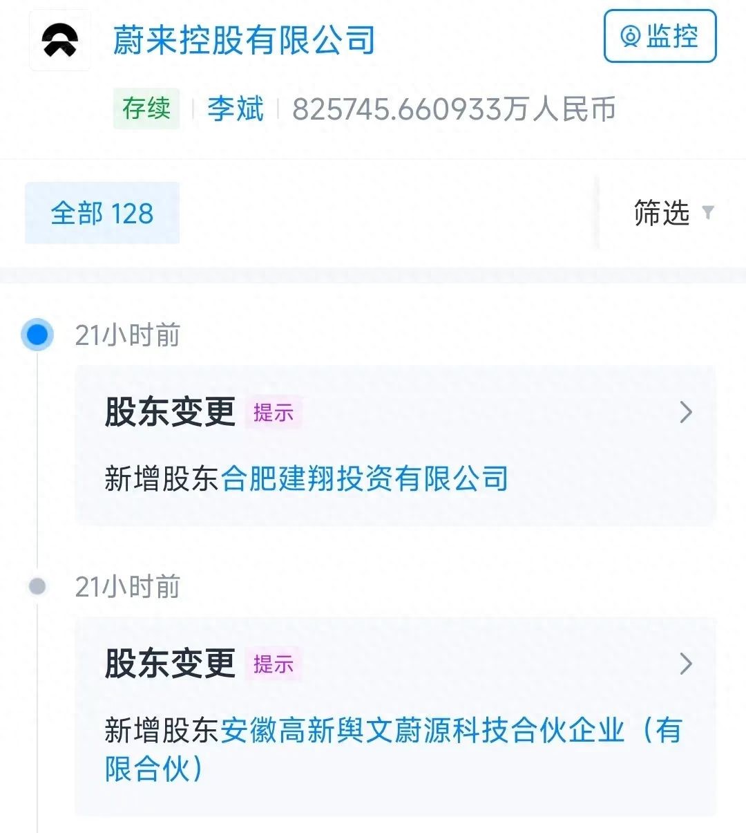 近日,蔚來控股有限公司發生工商變更,新增合肥建翔投資有限公司、安徽高新輿文蔚源科技合伙企業(有限合伙)為股東,同時注冊資本由約78.57億人民幣增至約82.57億人民幣。據了解,此次增資旨在進一步支持公司在新能源汽車領域的業務發展。