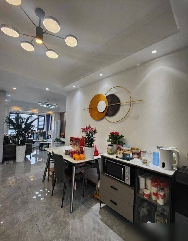 再看餐廳的小巖板方桌和側(cè)畔壁柜,沒有選流行的“圓桌顯團圓”,反而用方桌適配小家庭的日常圍坐;壁柜不是單純的“顏值擔當”,而是實實在在用“網(wǎng)紅設計”解決了“碗碟沒處放”的麻煩。這種“取其精華,去其冗余”的混搭思路,和今年大火的“中古風”異曲同工——中古風講究“功能主義與美學平衡”,拒絕為了復古而復古,只保留那些能提升生活效率的設計,比如幾何線條的家具、天然材質(zhì)的軟裝。屋主顯然深諳此道:巖板的耐臟、壁柜的分層,都是“用設計服務生活”的典型。