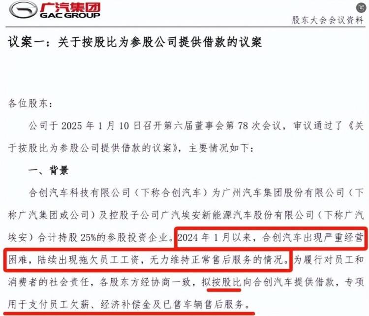 不過這一次是確鑿的信息,因為是來自合作方廣汽集團的披露,其表示合創汽車已經經營困難、拖欠工資、無力維持售后。于是股東們商議,擬按照股權比例,借筆錢給合創汽車,值得一提的是這筆錢,只能用于支付員工欠薪、經濟補償及已售車輛售后服務。此外,廣汽埃安將接管合創汽車產品的售后服務工作。