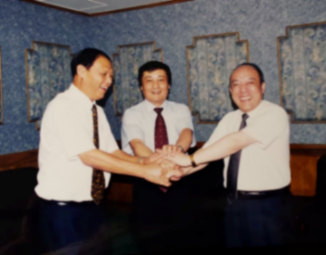 單啟寧回憶,那是2002年,他陪同宗慶后參加杭州市召開的工業(yè)興市大會(huì)。會(huì)上獎(jiǎng)勵(lì)了杭州工業(yè)興市三面紅旗的企業(yè)家:馮根生、魯冠球、宗慶后。會(huì)前,三位企業(yè)家被安排在會(huì)議廳旁的休息室,他看到三位老朋友相聚談笑風(fēng)生,就向三位老總提出了一個(gè)請(qǐng)求,請(qǐng)三位老總合一張影,老總們欣然答應(yīng),同時(shí)主動(dòng)把雙手握在一起,象征杭州市工業(yè)興市合力向上的寓意。他拍下了這珍貴的歷史瞬間,這也是三位企業(yè)家同框的一張彌足珍貴的合影。