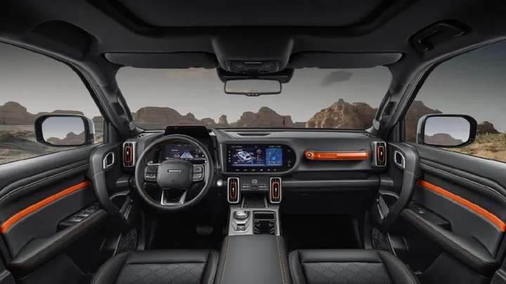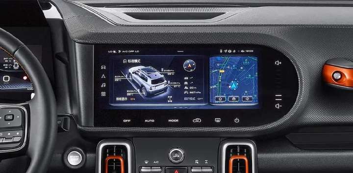 中控配備了嵌入式12.3英寸“湖面屏”,可提供給用戶豐富的影音娛樂生態體驗,同時還可以顯示海拔、氣壓、指南針、坡度、差速鎖狀態/前后橋扭矩狀態等多達5項越野信息,讓戶外出行更加輕松。