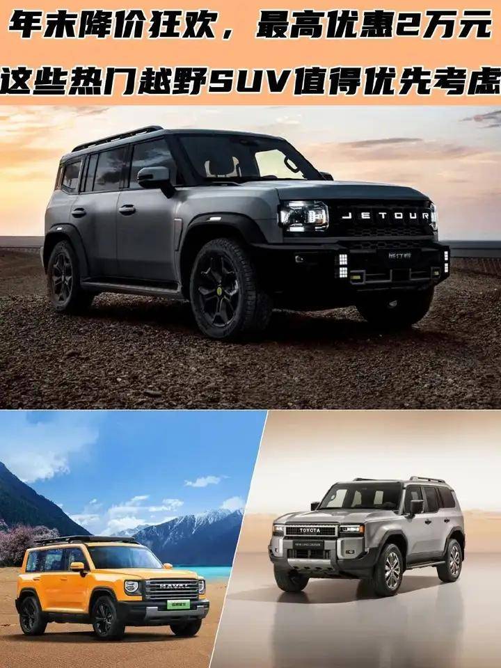 當(dāng)前中國車市的價(jià)格戰(zhàn)愈發(fā)激烈,在這場競爭中,部分車企可能會(huì)面臨嚴(yán)峻挑戰(zhàn),但同時(shí)也為消費(fèi)者帶來了更多實(shí)惠。在新歷年初及農(nóng)歷年末交際之時(shí),車企們都希望能喜迎“開門紅”,相繼祭起價(jià)格“利器”,以期在激烈的市場競爭中占得先機(jī)。這一舉措不僅為消費(fèi)者帶來了實(shí)實(shí)在在的購車優(yōu)惠,也為市場注入了一股新的活力。對于那些正考慮購置一款新車的消費(fèi)者來說,現(xiàn)在無疑是一個(gè)不容錯(cuò)過的好時(shí)機(jī)。接下來,就給大家盤點(diǎn)三款熱門越野SUV的行情,它們不僅產(chǎn)品力十分出眾,同時(shí)還推出了令人驚喜的優(yōu)惠活動(dòng),最高優(yōu)惠幅度達(dá)到了2萬元,近期有打算購車的朋友可以參考下。