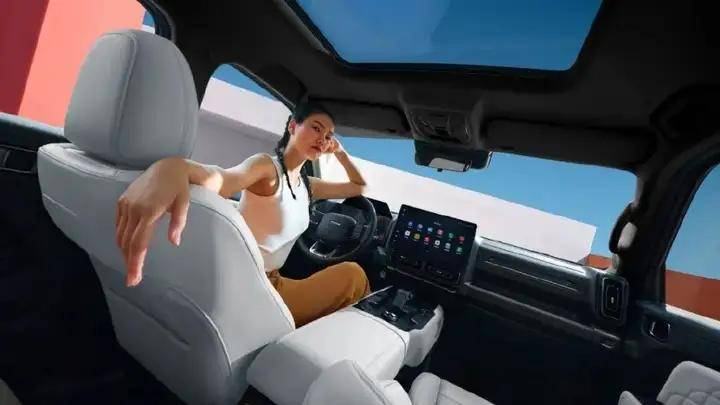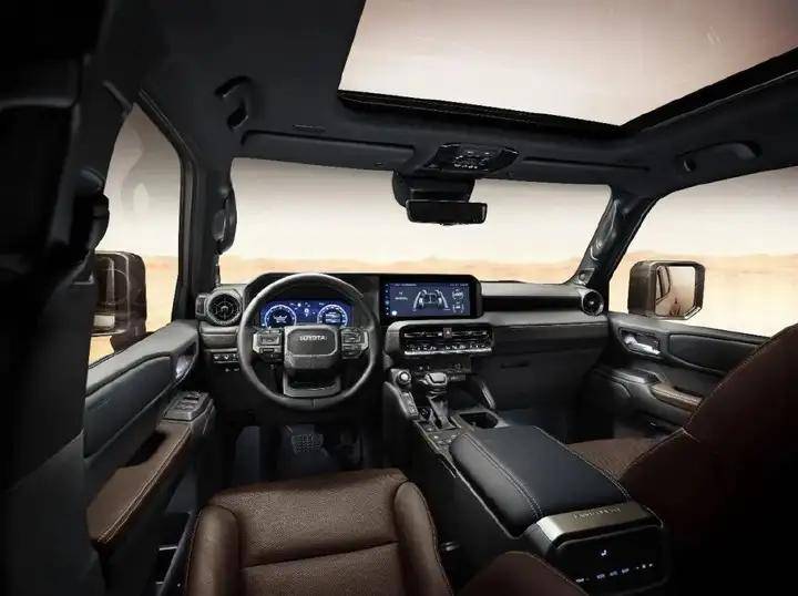 內(nèi)飾方面,儀表盤和中控臺(tái)的設(shè)計(jì)都采用了懸浮式的設(shè)計(jì),12.3英寸的全液晶儀表盤能夠清晰地顯示車輛的各種信息,而12.3英寸的中控臺(tái)觸控屏幕則支持語音控制和手機(jī)互聯(lián)等功能,讓駕駛者隨時(shí)隨地享受智能化的駕駛體驗(yàn)。此外,采用了大量的軟質(zhì)材料和皮質(zhì)包裹,質(zhì)感非常出色,同時(shí)還采用了深色與淺色搭配的方式,營造出一種溫馨的氛圍,整體感覺不那么像硬派越野的樣子。配置方面,配備了三區(qū)自動(dòng)空調(diào)、座椅加熱/通風(fēng)、無線充電、JBL影像以及數(shù)字鑰匙等。