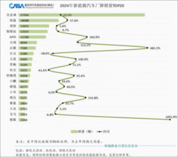 重慶新能源品牌銷量TOP20