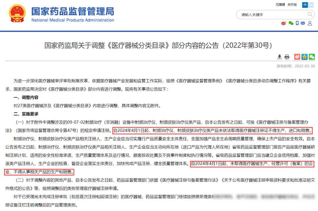 首先,為什么射頻美容儀的價格會突然跳水呢?聽說,是因為有個什么30號公告,把射頻儀列入了醫療器械目錄,這可不是鬧著玩的。從2024年4月1日起,沒注冊的產品是不能賣了,也沒有資質的企業更別想再生產和銷售射頻儀了。這不,為了趕在截止日期前把存貨賣光,廠家們開始玩降價大促銷了。