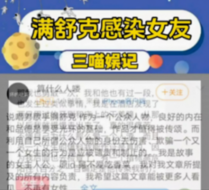據(jù)女友爆料,她在與滿舒克交往期間不幸染病,而男方對此卻毫不負(fù)責(zé),甚至在術(shù)后對她冷漠無情。這一事件迅速在網(wǎng)絡(luò)上擴(kuò)散,網(wǎng)友紛紛對滿舒克的行為表示譴責(zé)。