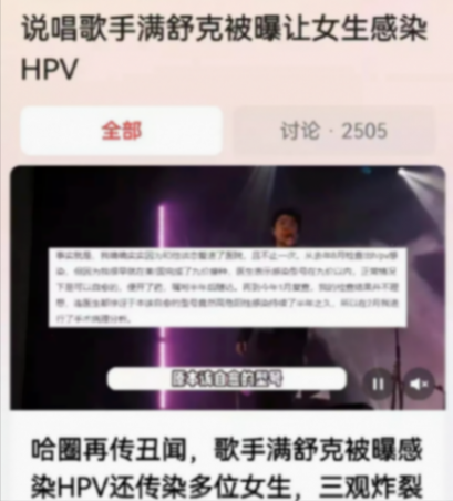 真是太炸裂了!知名嘻哈歌手滿舒克感染HPV還傳染多名女生,網(wǎng)友直呼:九價也防不住!