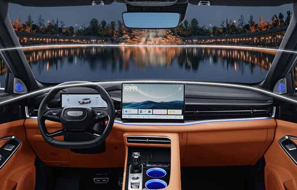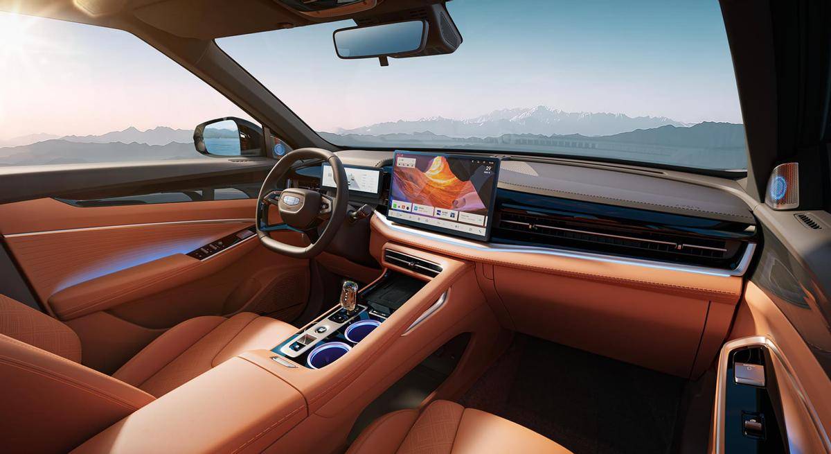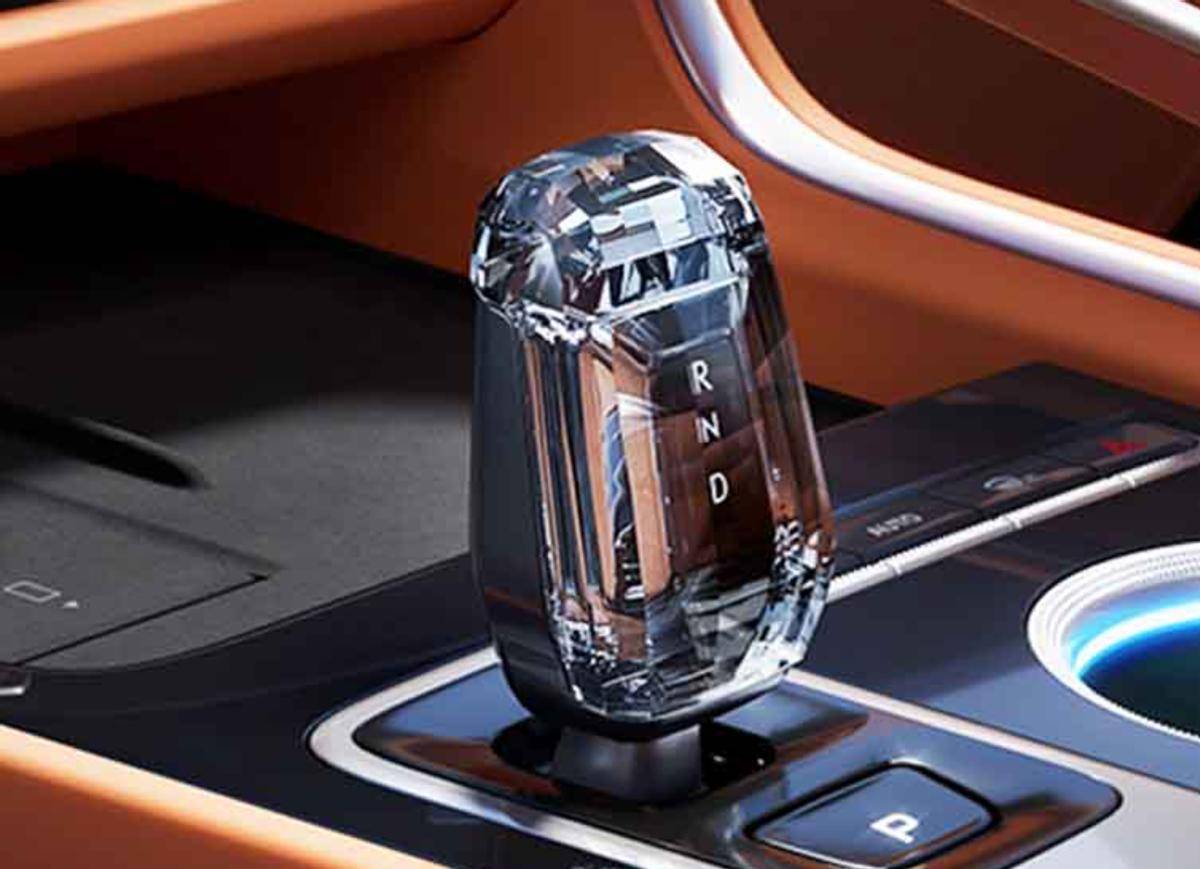 外觀營造的是運動氛圍。而在營造內飾氛圍上,吉利一直都很有一手,氛圍燈布置得高級,顏色還多。這個位置用的水晶擋把,也是一眼高級。