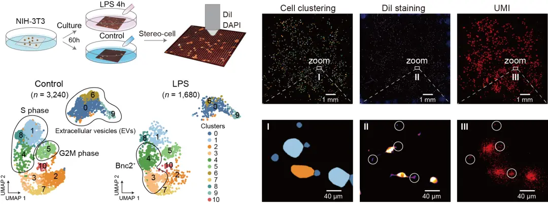 Stereo-cell 基于 DNA 納米球芯片建立實驗流程,實現寬幅細胞投入通量