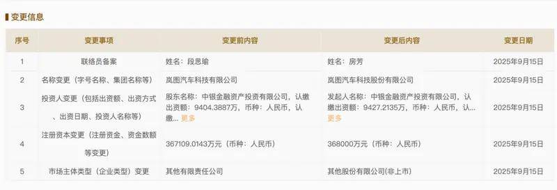 9月18日當天,東風集團內發生了兩件大事。其一,嵐圖汽車科技有限公司(以下簡稱“嵐圖汽車”)完成工商變更,正式更名為“嵐圖汽車科技股份有限公司”。參考此前東風集團股份停牌后的公告,嵐圖汽車似乎距離“介紹上市”不遠了。