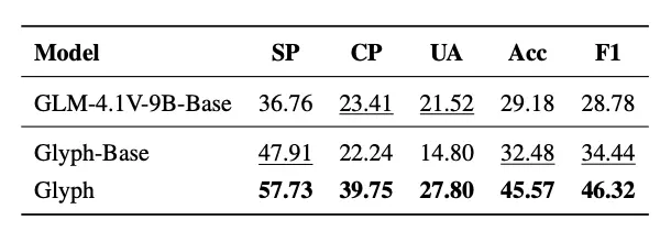 靠著這套組合拳,Glyph在高壓縮的視覺上下文任務里依然能游刃有余。