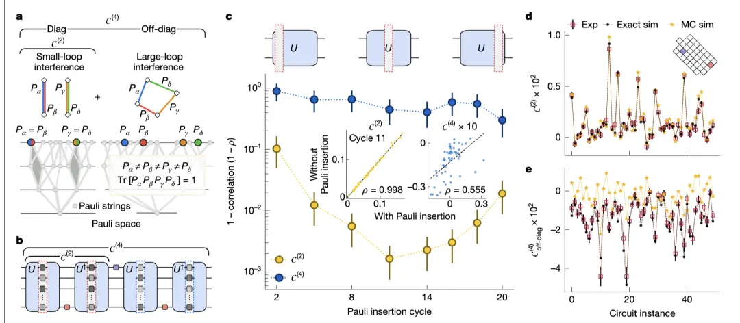 第二,二階OTOC里藏著 “大循環(huán)干涉”(large-loop interference)的現(xiàn)象,經(jīng)典計(jì)算機(jī)算不出來