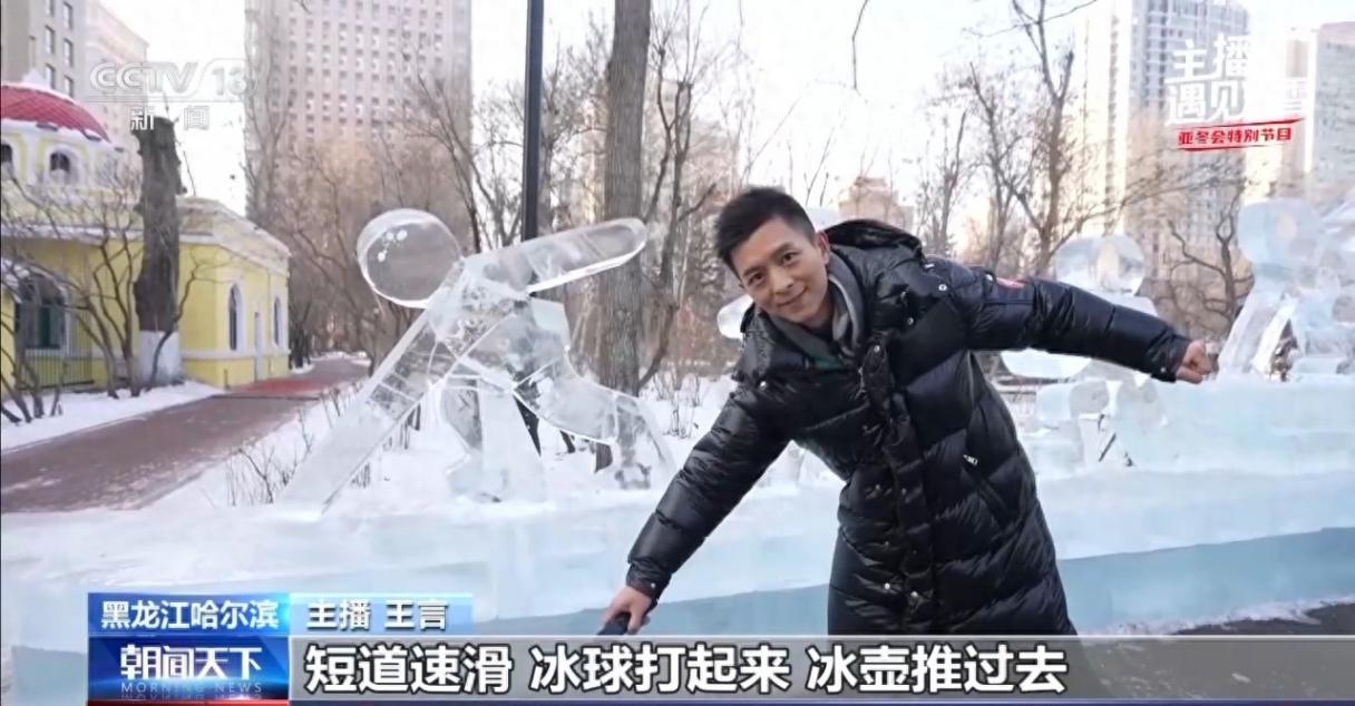 主播 王言:兆麟公園正在舉辦第51屆冰燈藝術游園會。亞冬會的元素,現在真是在哈爾濱的大街小巷隨處可見。