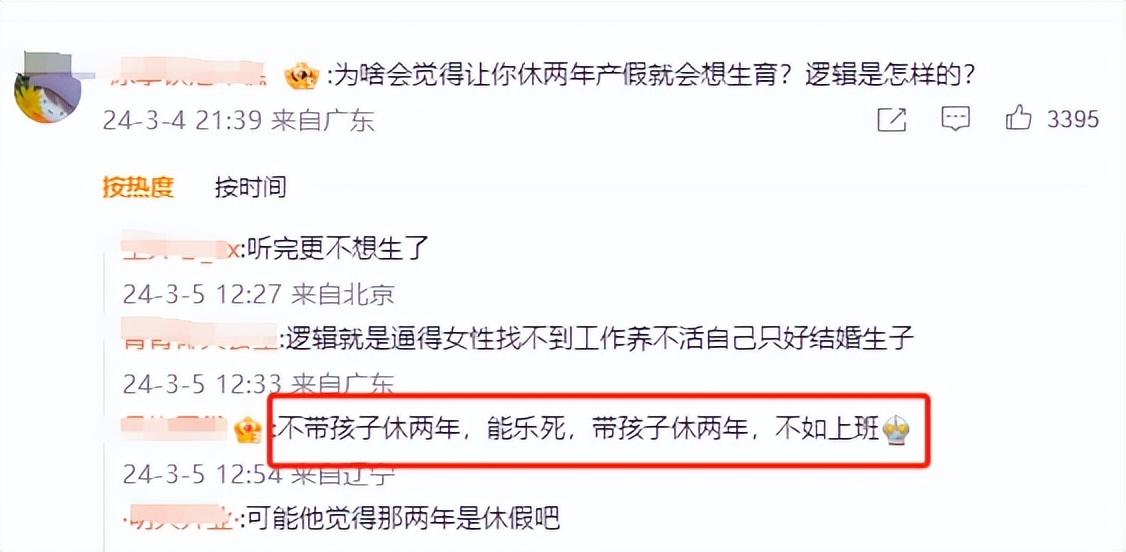 網友質疑:為啥會覺得讓你休兩年產假就會想生育?邏輯是怎樣的?