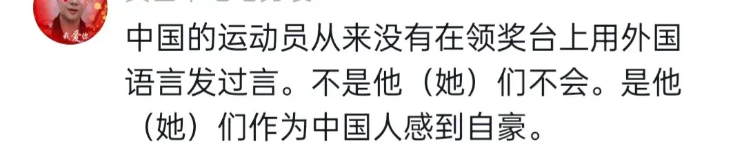 "會英語有什么了不起,是中國人會中國話最重要""總拿英語說事,現在的娃娃從小就學英語了,有啥好捧的真有意思"……一時間,負面輿論如洪水般洶涌而來,對這位年輕運動健兒的辱罵聲不絕于耳。