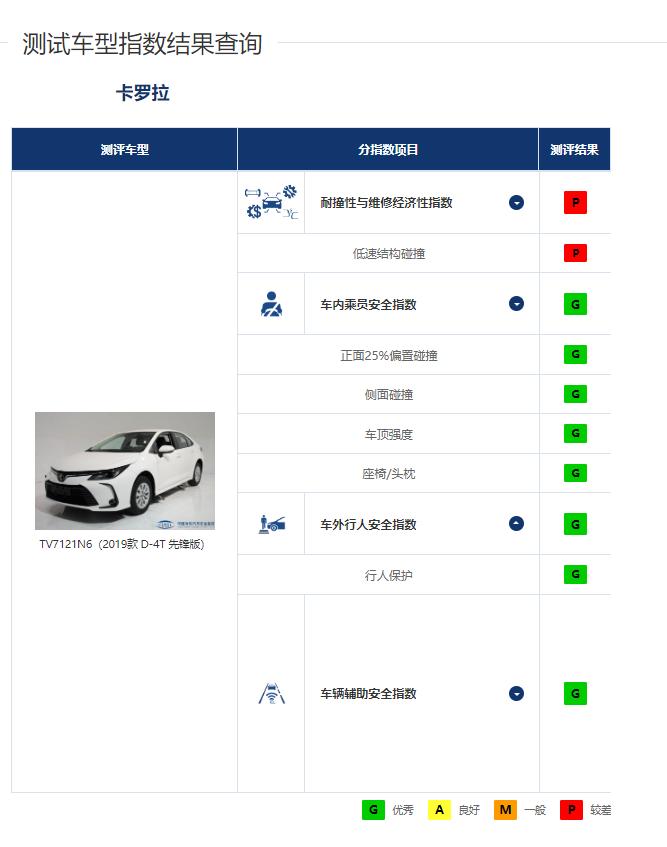 此外,在被動安全性方面,全車標配8個安全氣囊(最低配6個),關鍵部位如a柱,b柱配置高強度熱成型鋼材。2024年9月,中保研關于十二代卡羅拉的碰撞測試成績出爐,卡羅拉在車內成員安全指數、車外行人安全指數、車輛輔助安全指數等三項指數均獲得“G”(優秀)評價。其中,在反映車身架構的車內安全指數方面,無論是正面25%偏置碰撞、側面碰撞、車頂強度、座椅/頭枕等子項目中均無失分項。