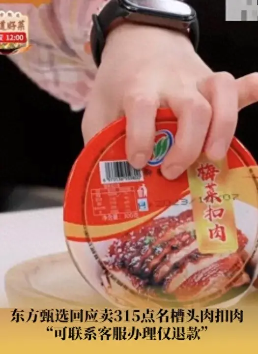 3月16日,315晚會曝光了“安徽東輝科技食品有限公司”生產(chǎn)的“御徽緣”梅菜扣肉,使用的都是槽頭肉,并且含有大量未經(jīng)處理干凈的淋巴肉和甲狀腺,槽頭肉不屬于食品原料、禁止食用,這嚴(yán)重不符合《食品安全標(biāo)準(zhǔn)》。“東方甄選”和“瘋狂小楊哥”直播間都銷售過這款產(chǎn)品。