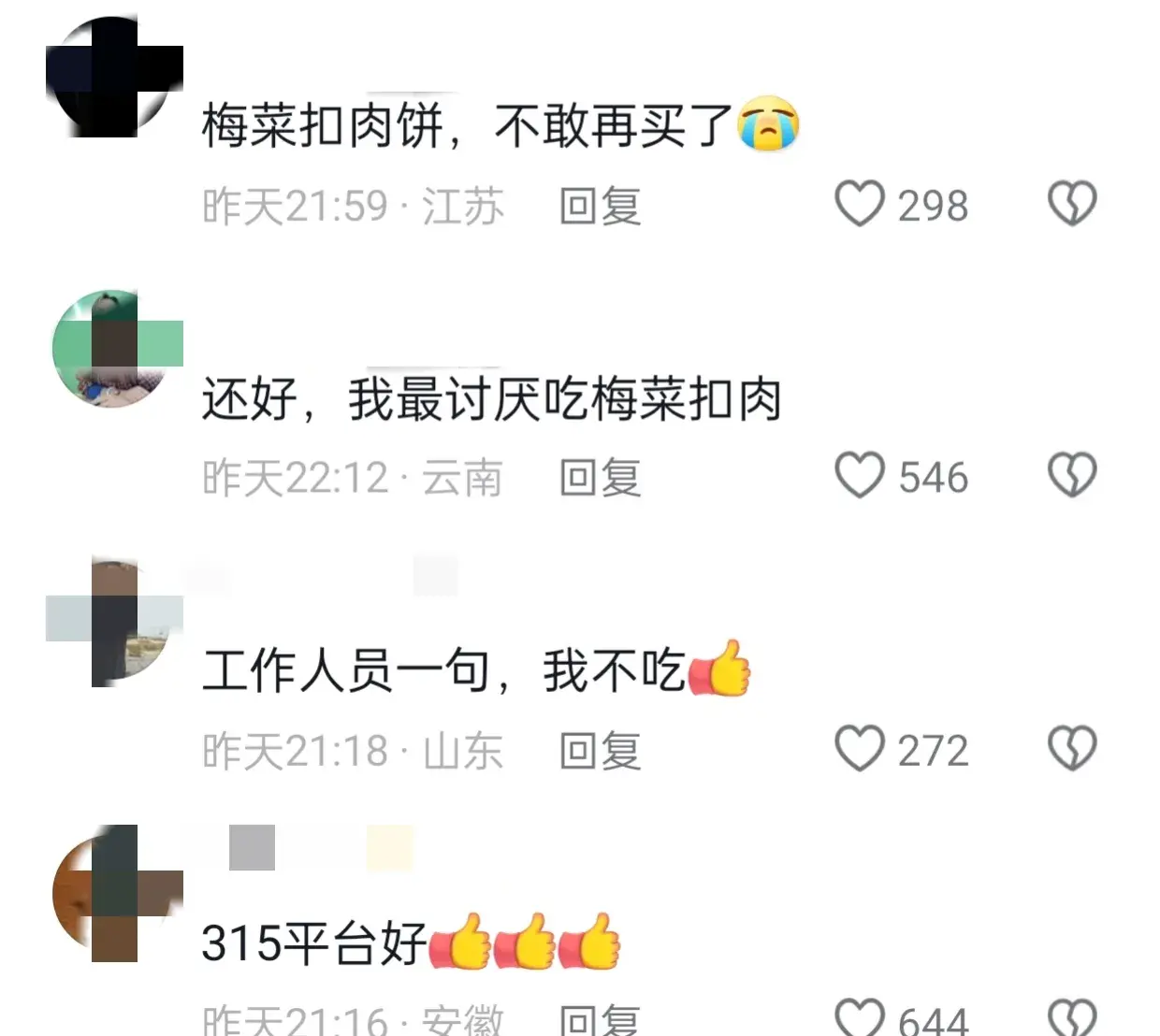3.15當天,春晚視頻中可以看到,梅菜扣肉帶淋巴肉,做出來和正常肉的味道是一樣的,網友表示,再也不會吃梅菜扣肉,一句以后不會再吃,破防了。