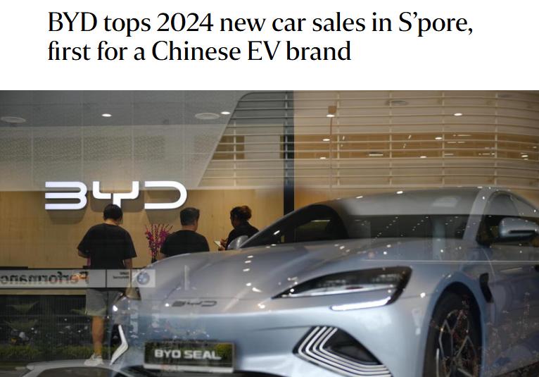 就在2025年新春佳節(jié)即將到來之際,國產(chǎn)新能源汽車再傳好消息。有數(shù)據(jù)顯示,2024年度,比亞迪汽車在新加坡市場以6191輛的注冊銷量登頂新加坡汽車銷量榜首,市占率達(dá)14.4%,超越豐田、寶馬和特斯拉,成為首個在該市場奪冠的中國電動汽車品牌,這一成績標(biāo)志著中國新能源汽車在國際高端市場的重大突破,比亞迪在海外表現(xiàn)亮眼。