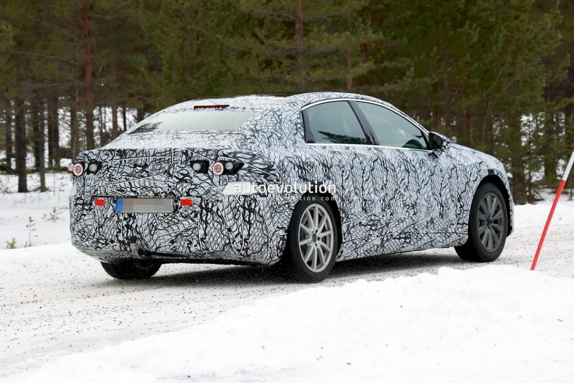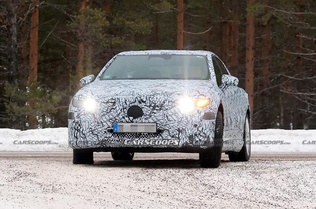 從諜照來看,該車并未和之前的EQ一樣采用弓形車頂,而是標準的三廂版造型,同時車頭是造型圓潤的封閉式中網,中網中央將擁有一個奔馳大標。新車將搭載全新的LED大燈,造型較為犀利,車頭下方將配備一個長條形的進氣口。
