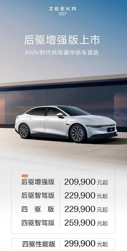 極氪汽車坐不住了,快速進行反擊,4月1日,該品牌正式推出新增的極氪007后驅增強版,售價20.99萬元。很顯然,這是為了阻擊小米SU7推出的新品,最重要的是,新車價格比小米SU7入門級產品更低。