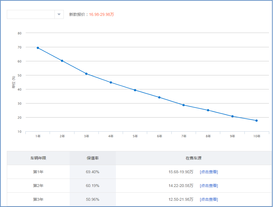 以國(guó)內(nèi)某著名新能源品牌的旗艦轎車為例,這款車無論是銷量還是存量都比較龐大,但一年的保值率也只有70%左右,跌幅約為30%,比特斯拉還猛。
