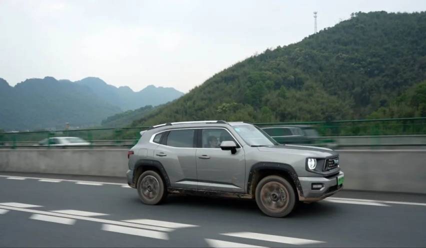 值得一說的是,哈弗二代大狗Hi4版具備540°場景影像(360°全景影像+180°透明底盤)+車輪視角的功能,這個功能在日常的城市路況,使用得頻率不高,但對于缺少越野經驗的我來說,這是個很實用的功能,不錯的清晰度,可以讓你在面對不確定的路況時減少視野盲區帶來的剮蹭。總體來說,比一般城市SUV強的車身參數,加上電四驅的加持,哈弗二代大狗Hi4版在面對諸如我體驗的林中山路時,它能輕易通過。在非越野路面,它的表現如何?就如glamping,對于眾多消費者來說,越野只是其中一個用車場景,在更多時候的用車場景是城區和高速路況。這次的試駕由于是從廣州出發到清遠英德,所以我們更多的駕駛場景是面對單程100多公里的高速場景。與此同時,我們的100多公里高速場景也是給車子上了強度,譬如坐著4個成年人,以及全程開啟智能混動+強制充電到80%。