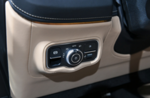 新款G500提供后排MBUX娛樂系統可選,選裝后能得到兩塊11.6英寸的后排觸控屏,為后排提供娛樂功能,也可以和中控屏幕進行聯動。后排配有獨立空調以及兩個出風口,周圍帶有縫線裝飾。