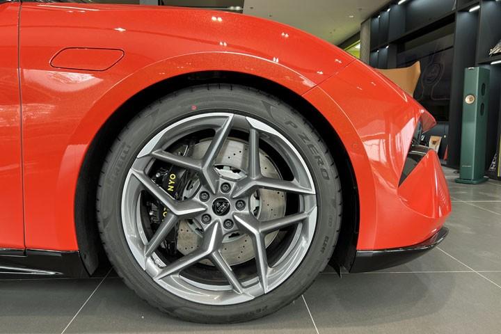 Emeya 擁有前通風孔鋁制六活塞剎車卡鉗,甚至還有 10 活塞的碳陶復合剎車系統可選,僅 10 萬人民幣的選配價格,對比意大利超跑廠絕對不貴。輪圈樣式則采用細條星式設計,21 吋輪圈與整車比例充斥著力量感與速度感,匹配倍耐力訂制高性能 P ZERO 輪胎,前輪的規格為 265/40 R21,后輪的規格為 305/35 R21,也可以選配至 22 吋鍛造輪圈。