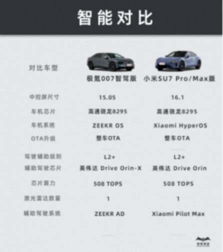 想要嘗鮮智能駕駛,在小米SU7上需要花費更高的價格,極氪007的入手門檻相對低很多,優勢明顯。