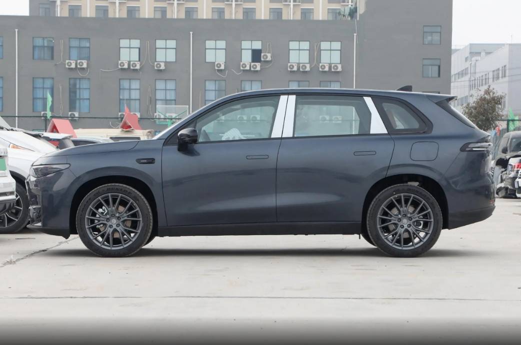 零跑C10車型的側面線條避免了過分強調運動感的風格,車頂帶有干練的平直延伸走向,配上微傾的尾柱銜接,讓車尾區域的造型更顯敦實,車窗周圍配有黑色裝飾條點綴,尾窗邊緣則設計成了較為柔和的圓角設計。車身側面并未帶有清晰的折角線條,而是通過前后輪拱的立體輪廓,以及車門的內凹結構共同增加了車身的立體感,車側裙邊使用了黑色裝飾件,搭配上啞光色的鏤空式輪轂,為車輛側面增添了一抹現代與時尚的氣息。