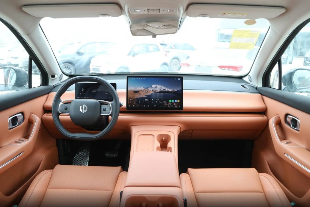 而在內飾設計上,座艙整體延續了簡約化的布局理念,中控臺表面帶有相對下溜式的間隔式設計,中間則采用內嵌貫穿出風口設計,保持了相對美觀簡潔的布局,軟性的面料在柔和的配色下更顯素雅。臺面中部采用一塊14.6英寸的懸浮屏,同時儀表部分為10.25英寸的液晶顯示,中央扶手區域布局簡潔,配有斜面的無線充電板和杯架結構。平底式的兩輻方向盤配上簡單的按鍵也方便了日常操作。